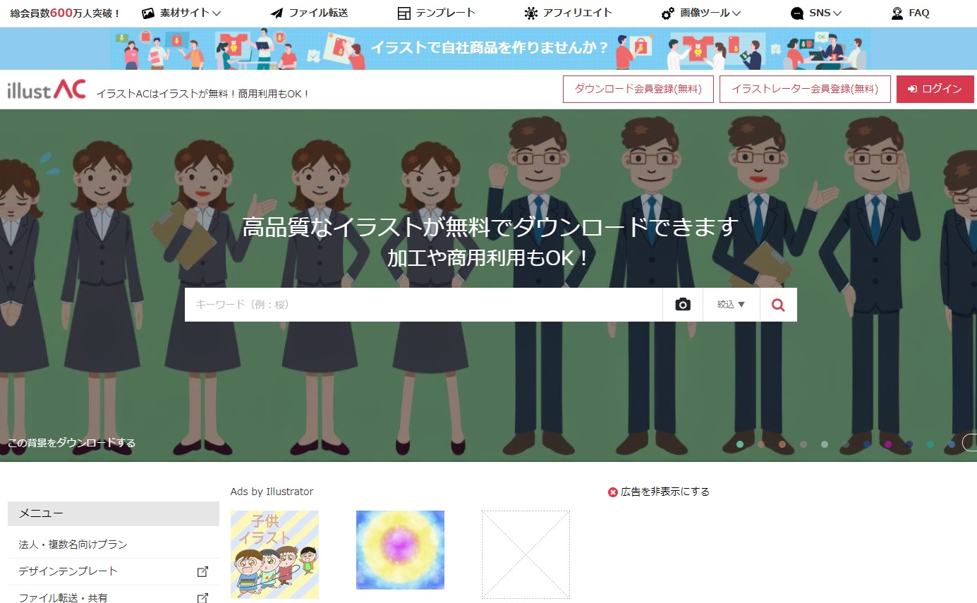 有料会員と無料会員があり、無料会員はダウンロードに少し時間がかかるのと、検索が1日5回まで、ダウンロード数が9点までという制限があります。