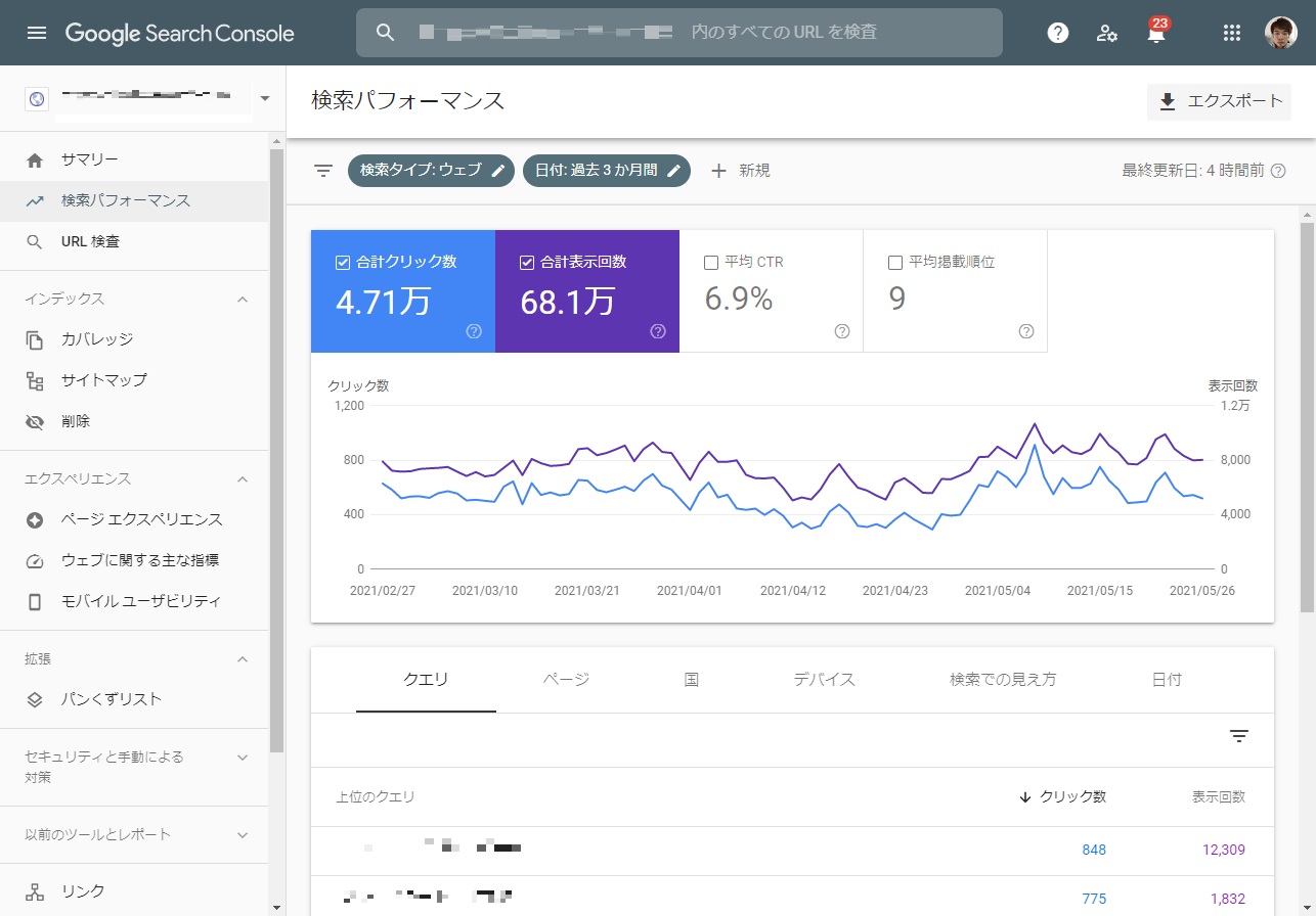 自分のアフィリエイトサイトがどんなキーワードで来ているのか、検索結果に表示されてからどれくらいクリックされているのかを知ることができます。