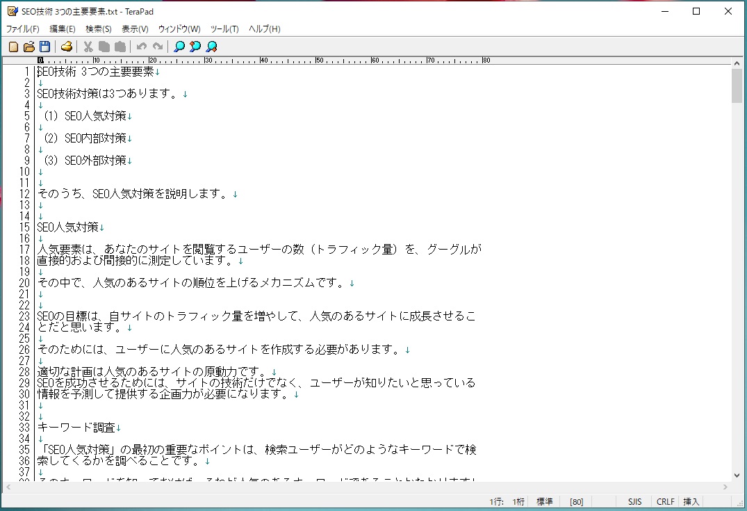 Windowsに標準で入っている「メモ帳」と似ていますが、HTMLファイルのタグを自動で色分けしてくれたり、行番号が表示されていたり、プレビュー機能があるため、記事を修正する際にとても便利です。