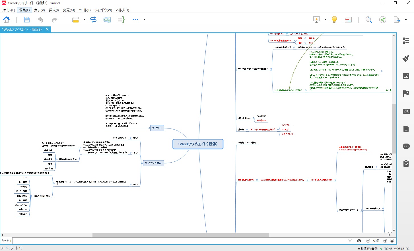 大きなアフィリエイトサイトを作るときは、XMINDでまとめてからアフィリエイトサイトを作ったほうが分かりやすいので便利です。