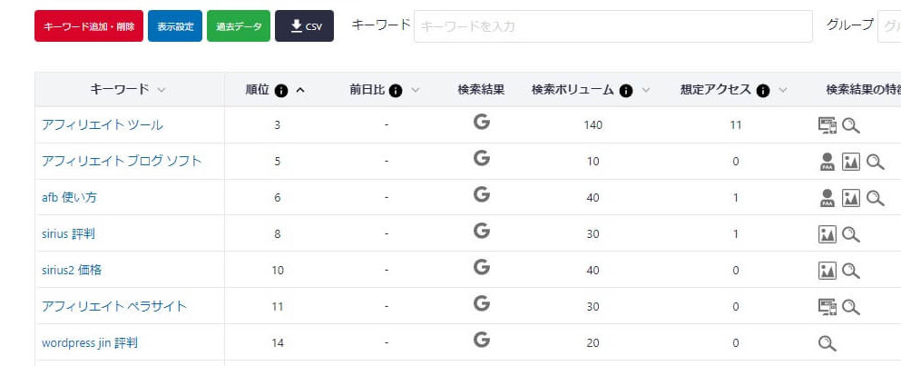 他にも検索順位ツールはありますが、このツールが安く使うことができるので、使うことがあります。